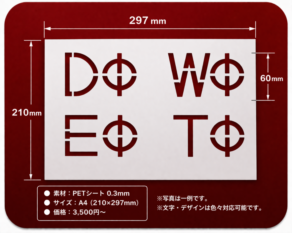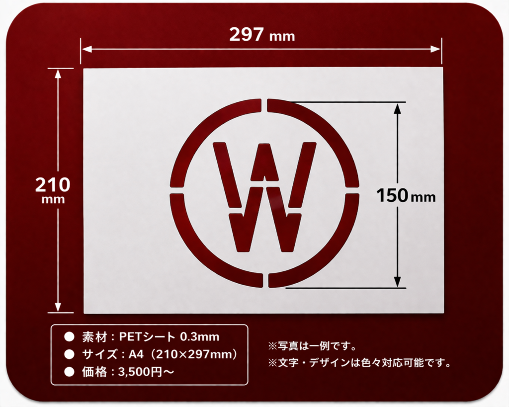 A4サイズ(210×297mm)で、現場でのスプレーマーキングに最適です。