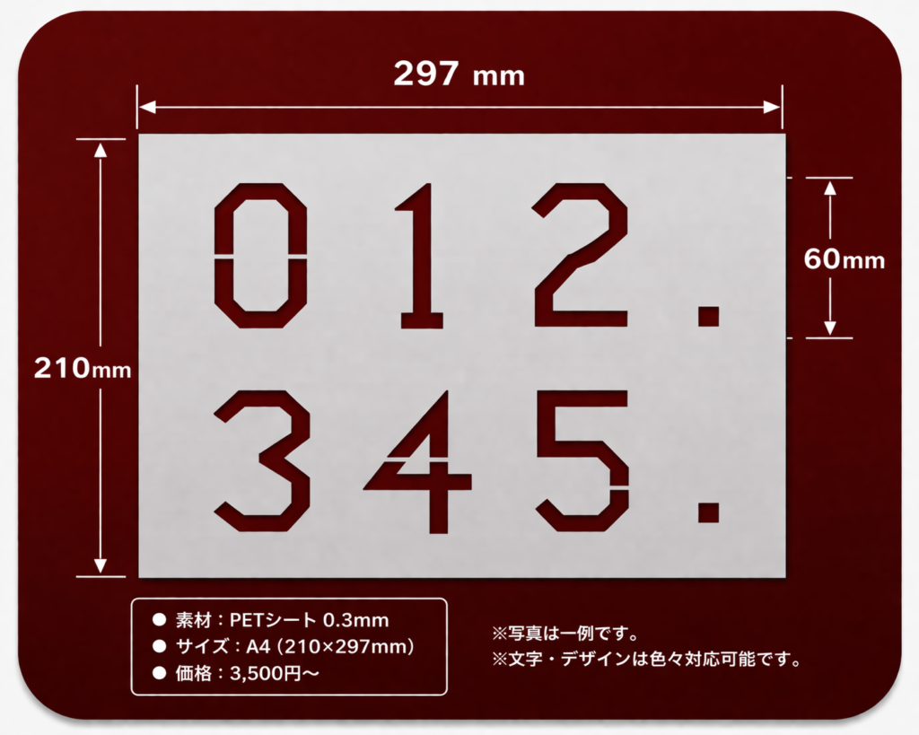 文字・数字・記号・ロゴなど、様々な内容に対応可能です。